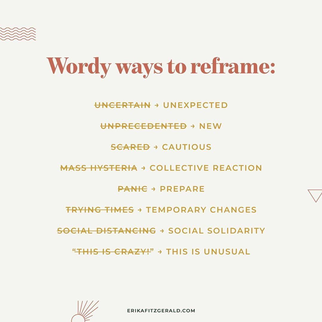 Was grateful to find an uplifting newsletter from denisejacobs in my inbox this morning. mailchi.mp/denisejacobs/l5s36lhm9d?e=5d2b7bc787 Really digging this list of ways to reframe our current situation that Denise shared from Erika Fitzgerald.