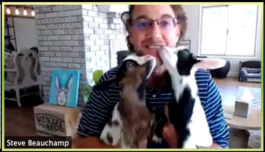 's bi-weekly executive update session, Steve Beauchamp shared his family's 2 new baby goats. 🐐