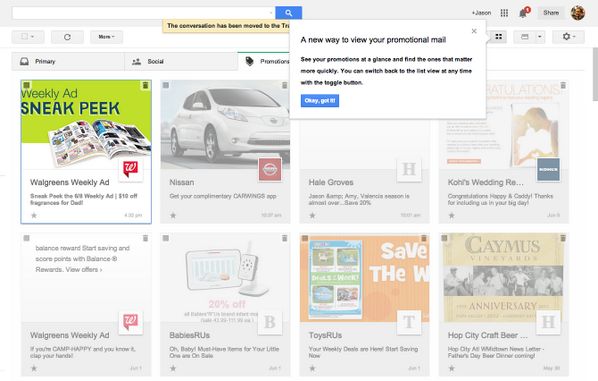 Just got the gmail promotions, grid view field trial. I'm more excited than you might think.
